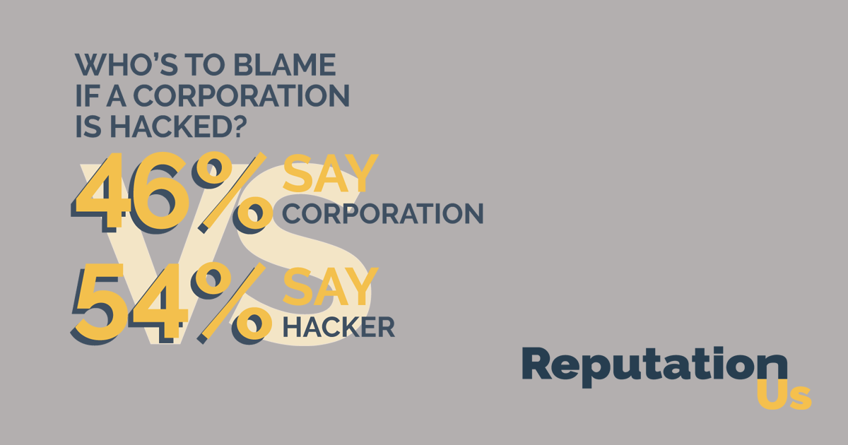 The recent RepUs cybersecurity survey examined the effects of cyberattacks on corporate reputation and consumer confidence. One of the most telling results of the study is consumers almost equally blame the company (46%) than the hacker (54%) when an attack occurs.
